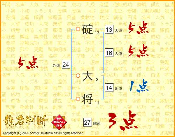 碇大将さんの天運は13画の5点!