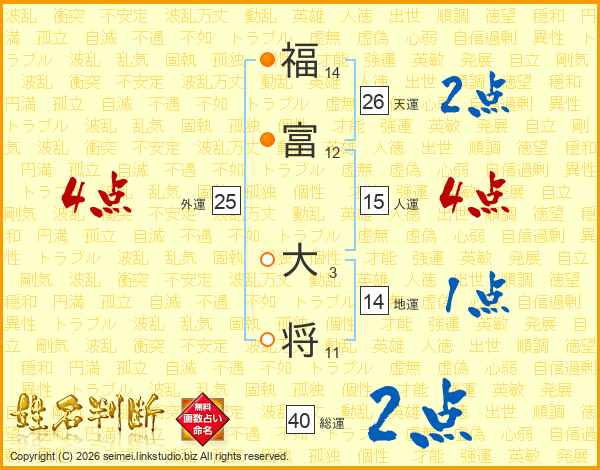 福富大将さんの天運は26画の2点!