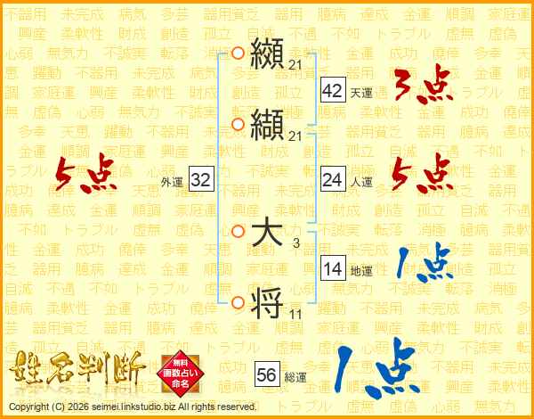 纐纈大将さんの総運は56画の1点!