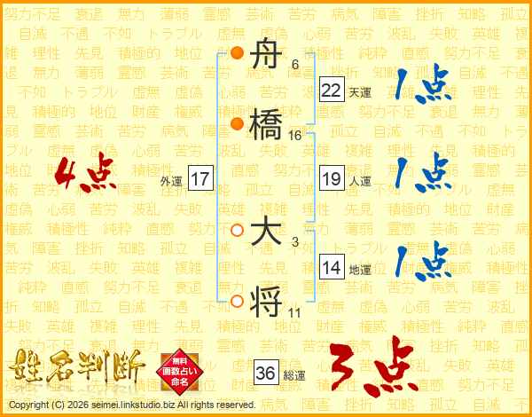 舟橋大将さんの総運は36画の3点!