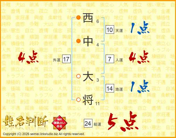 西中大将さんの総運は24画の5点!