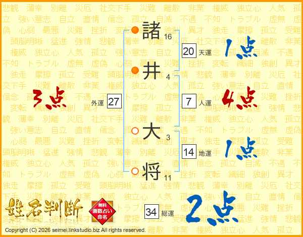 諸井大将さんの総運は34画の2点!