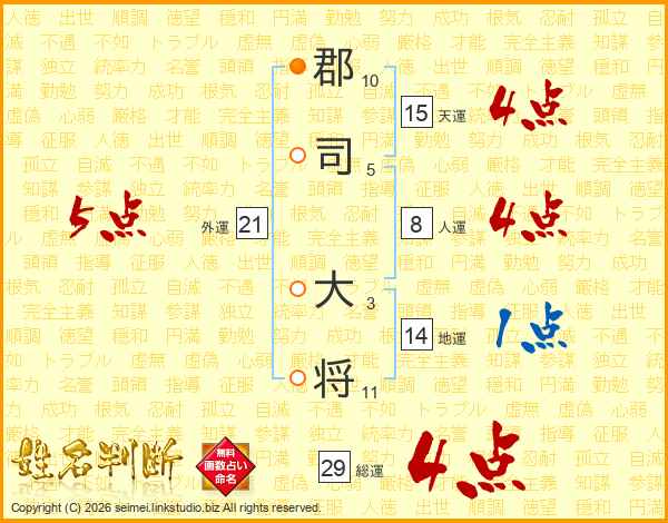 郡司大将さんの総運は29画の4点!