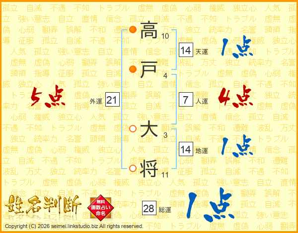 高戸大将さんの総運は28画の1点!