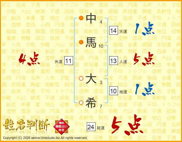 中(4画)馬(10画) 大(3画)希(7画)