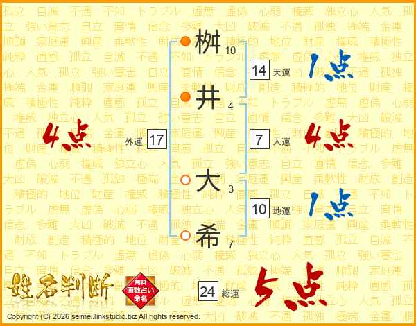 桝(10画)井(4画) 大(3画)希(7画)