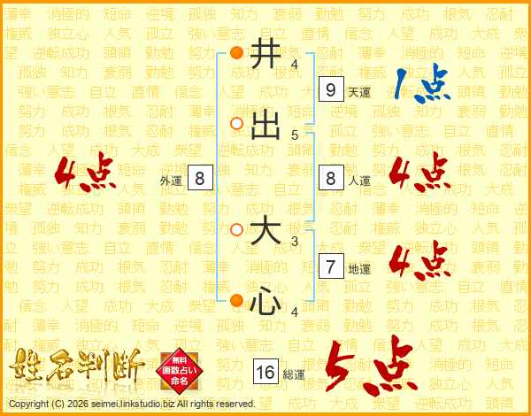 井出大心さんの総運は16画の5点!