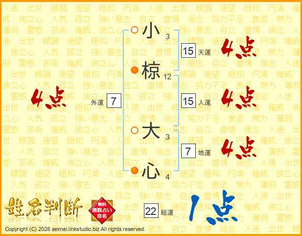 小椋大心さんの天運は15画の4点!