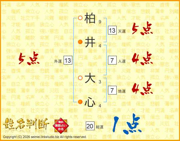 柏井大心さんの天運は13画の5点!