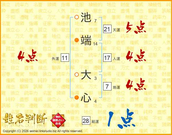 池端大心さんの天運は21画の5点!