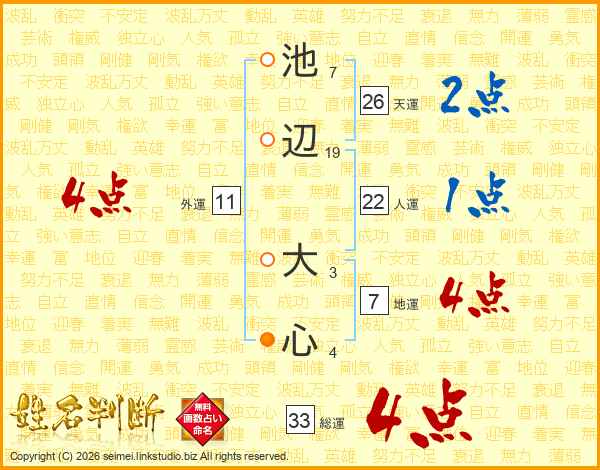池辺大心さんの天運は26画の2点!