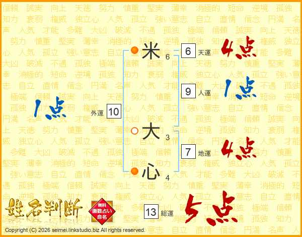 米大心さんの総運は13画の5点!