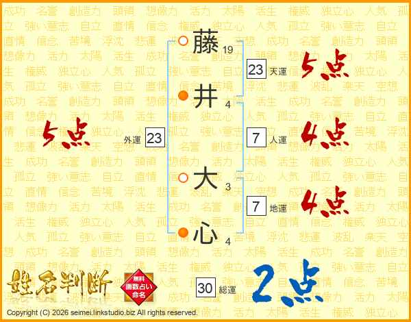 藤井大心さんの天運は23画の5点!
