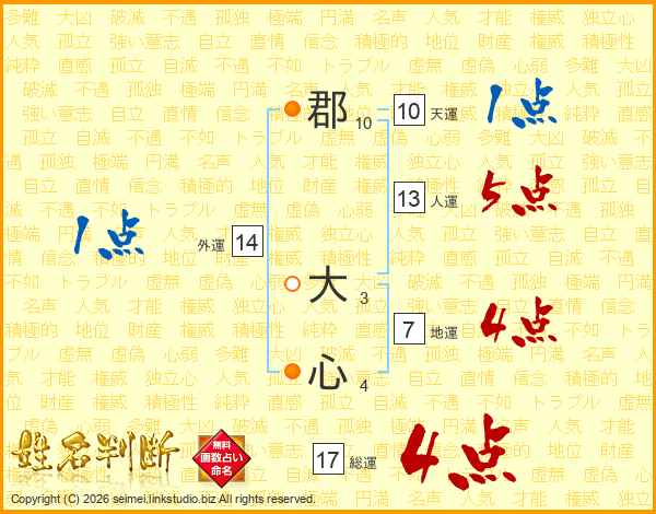 郡大心さんの総運は17画の4点!