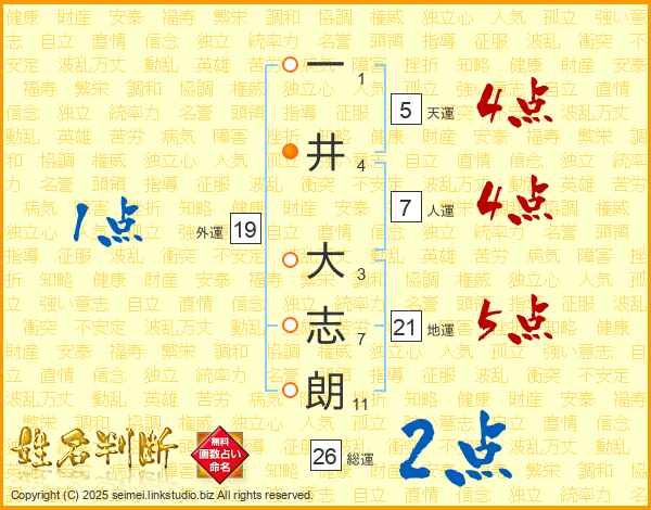 一(1画)井(4画) 大(3画)志(7画)朗(11画)