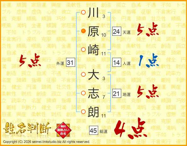 川原崎大志朗さんの総運は45画の4点!