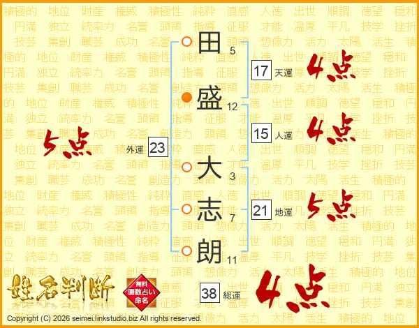 田盛大志朗さんの総運は38画の4点!