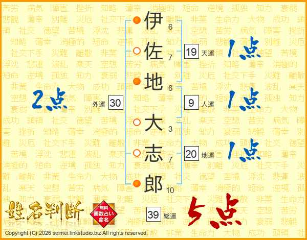 伊佐地大志郎さんの総運は39画の5点!