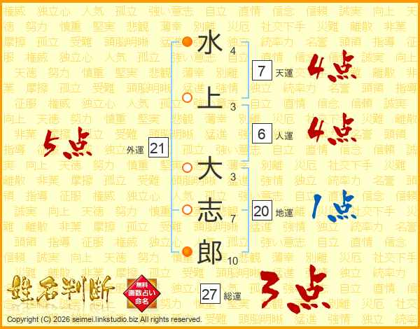 水(4画)上(3画) 大(3画)志(7画)郎(10画)