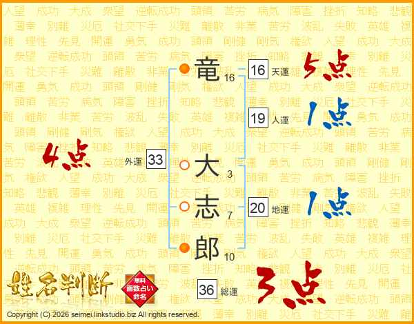 竜大志郎さんの外運は33画の4点!