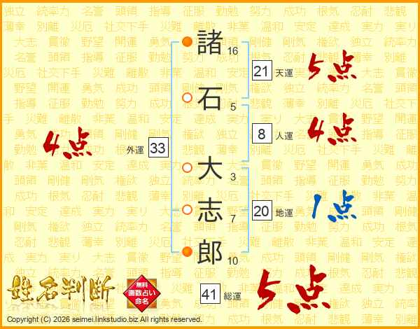諸石大志郎さんの天運は21画の5点!