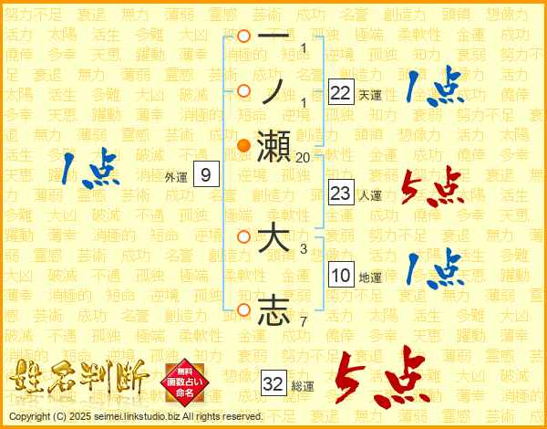 一(1画)ノ(1画)瀬(20画) 大(3画)志(7画)