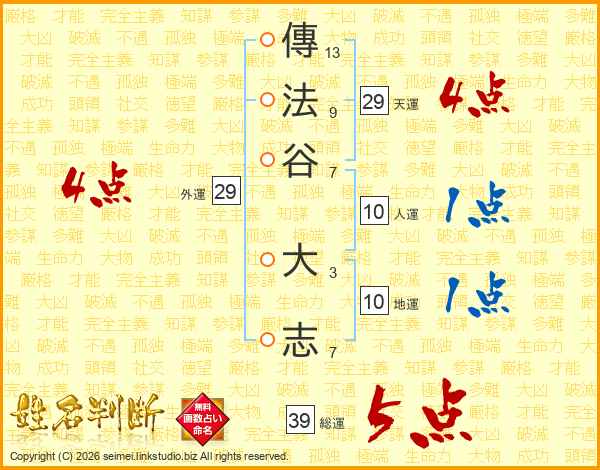 傳法谷大志さんの総運は39画の5点!