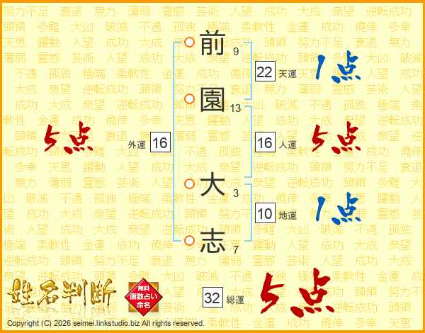 前園大志さんの総運は32画の5点!