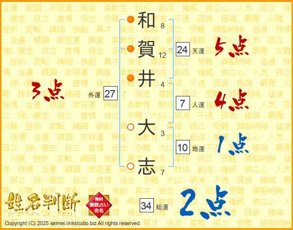 和(8画)賀(12画)井(4画) 大(3画)志(7画)