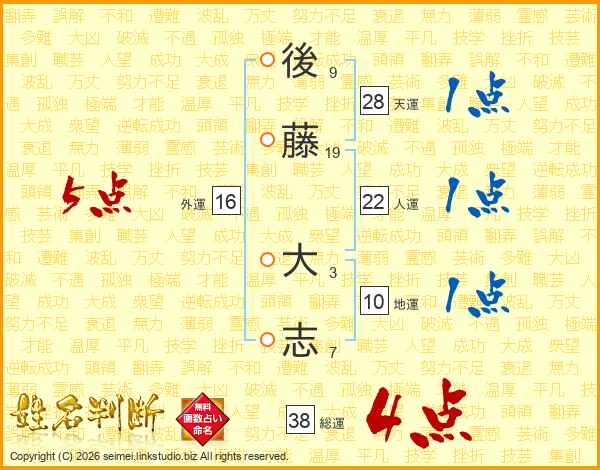 後藤大志さんの総運は38画の4点!