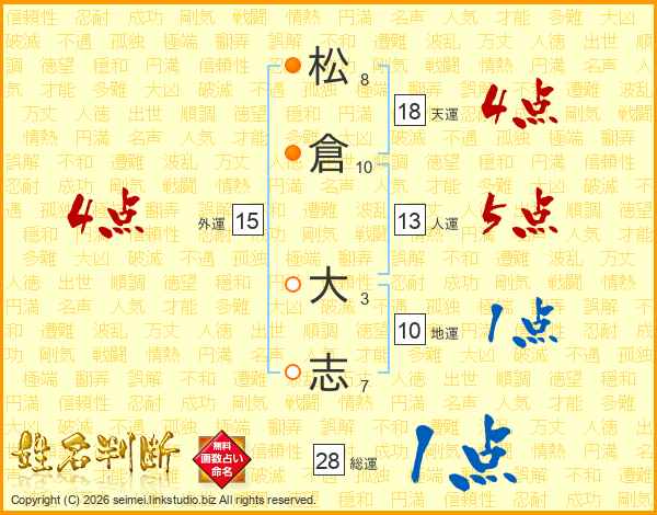 松(8画)倉(10画) 大(3画)志(7画)