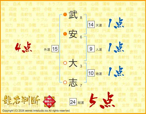 武安大志さんの総運は24画の5点!