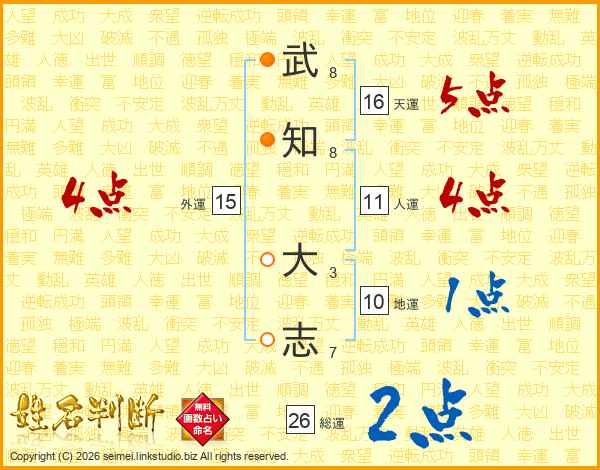 武知大志さんの総運は26画の2点!