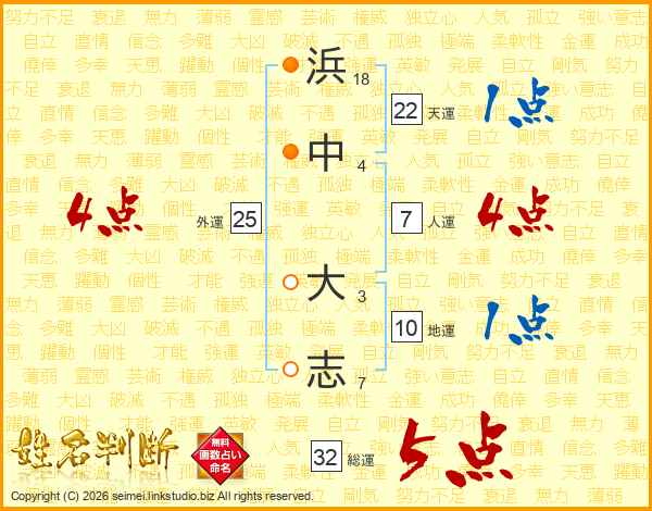 浜(18画)中(4画) 大(3画)志(7画)