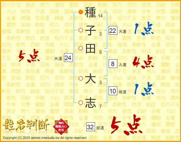 種(14画)子(3画)田(5画) 大(3画)志(7画)