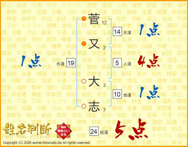 菅又大志さんの総運は24画の5点!