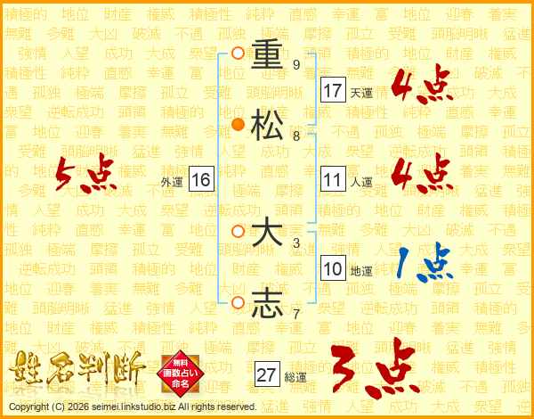 重(9画)松(8画) 大(3画)志(7画)