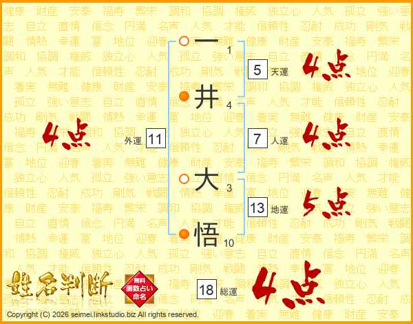 一(1画)井(4画) 大(3画)悟(10画)