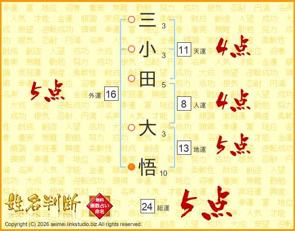 三(3画)小(3画)田(5画) 大(3画)悟(10画)