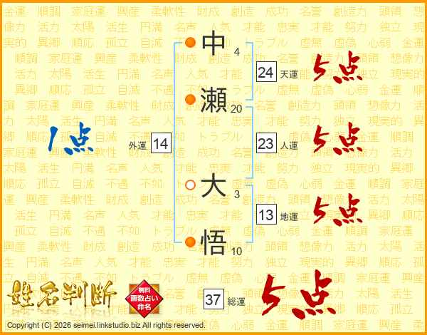 中瀬大悟さんの総運は37画の5点!