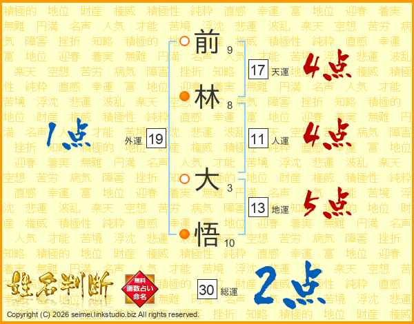 前林大悟さんの天運は17画の4点!