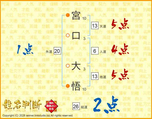 宮口大悟さんの総運は26画の2点!