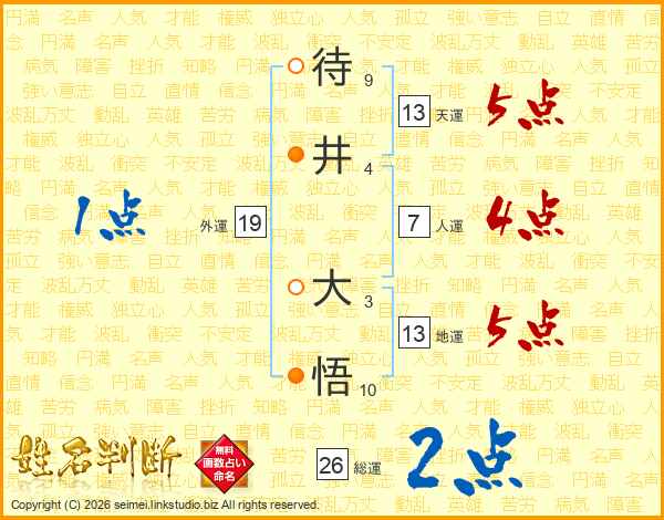待井大悟さんの天運は13画の5点!