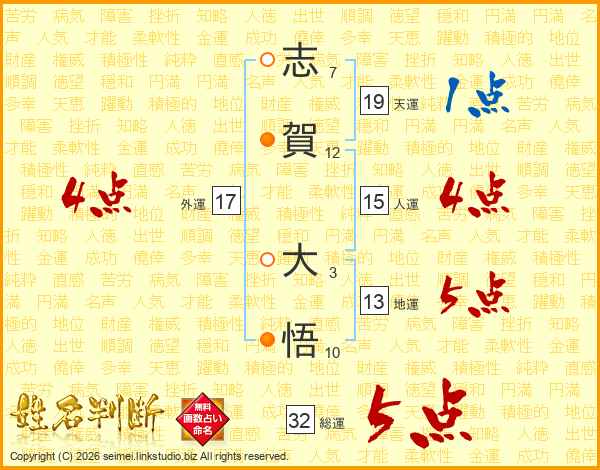 志賀大悟さんの総運は32画の5点!