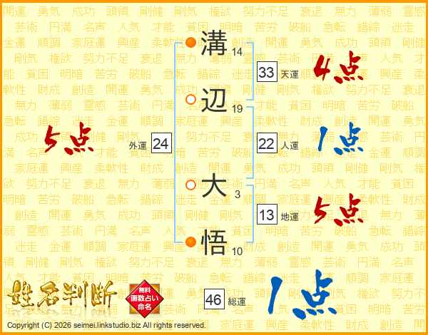 溝辺大悟さんの天運は33画の4点!