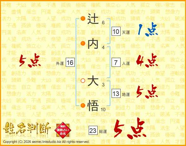 辻内大悟さんの総運は23画の5点!