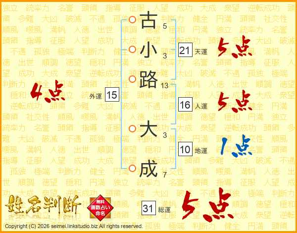 古小路大成さんの総運は31画の5点!