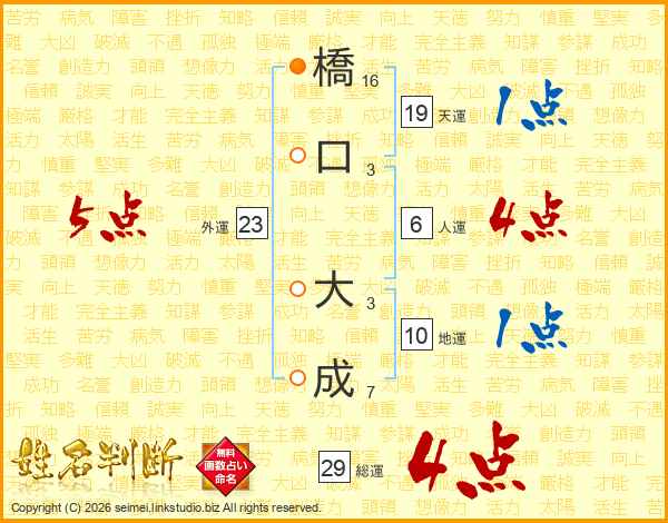 橋口大成さんの総運は29画の4点!