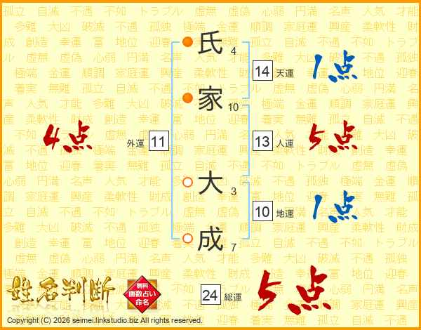 氏(4画)家(10画) 大(3画)成(7画)