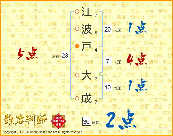 江波戸大成さんの総運は30画の2点!